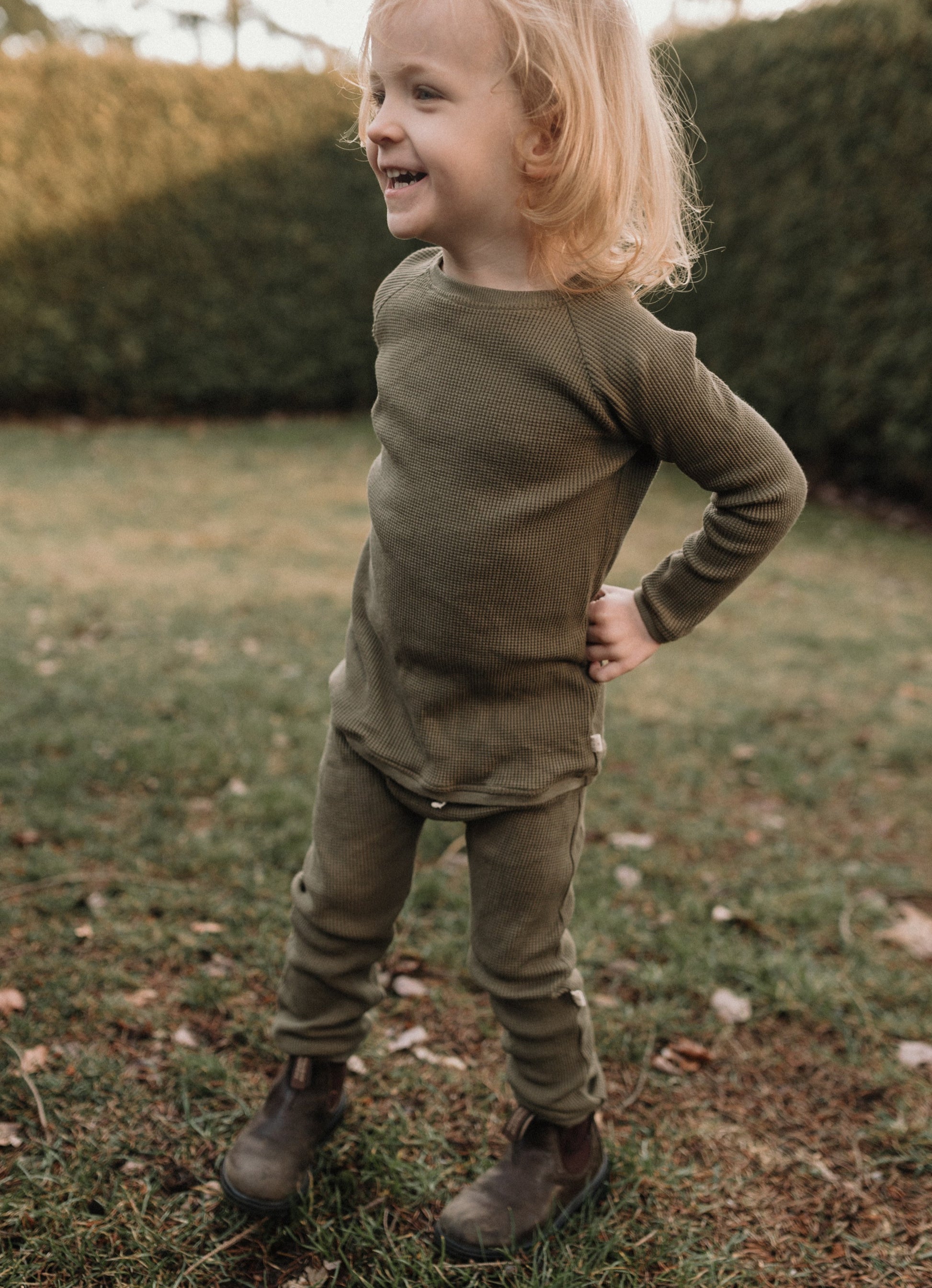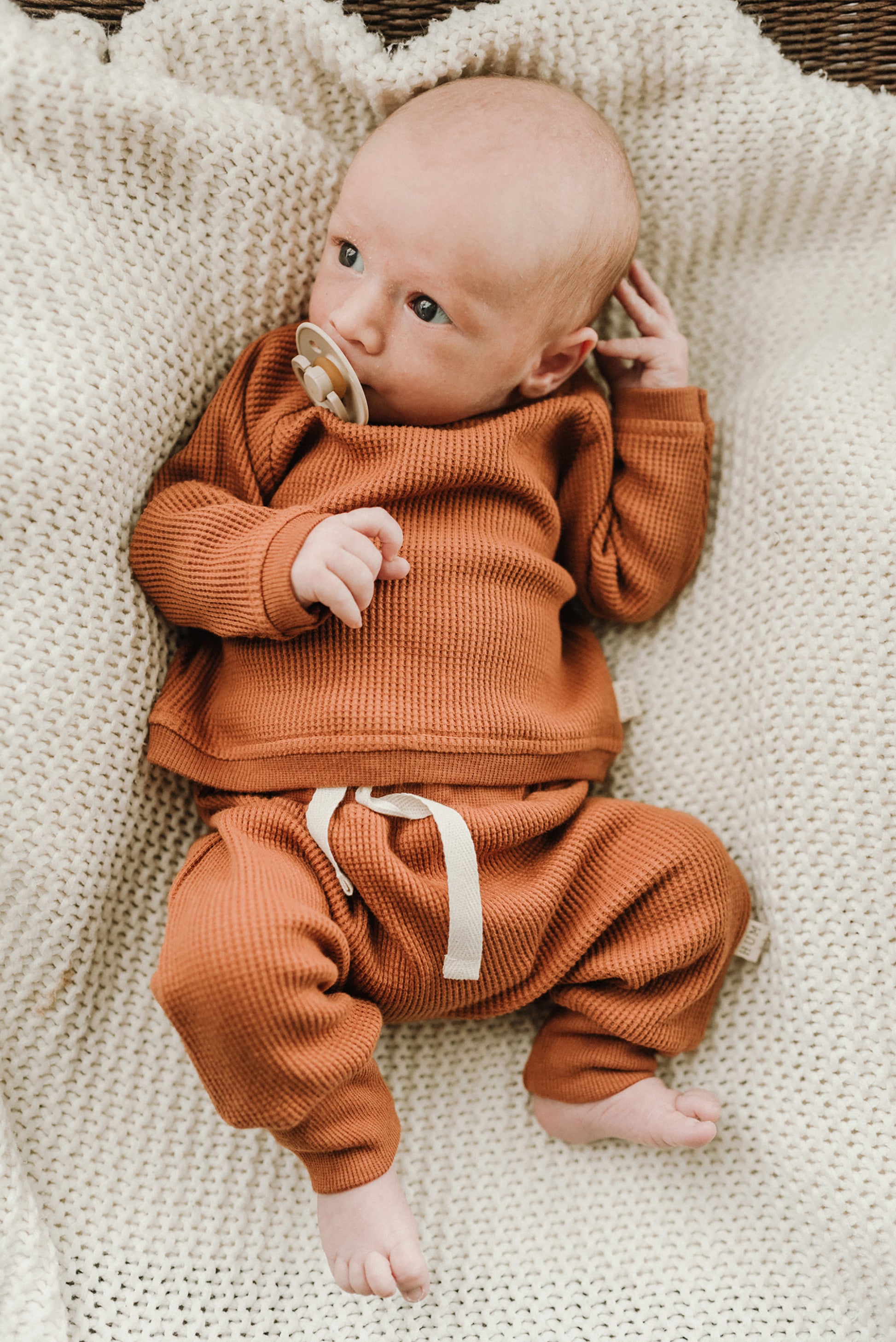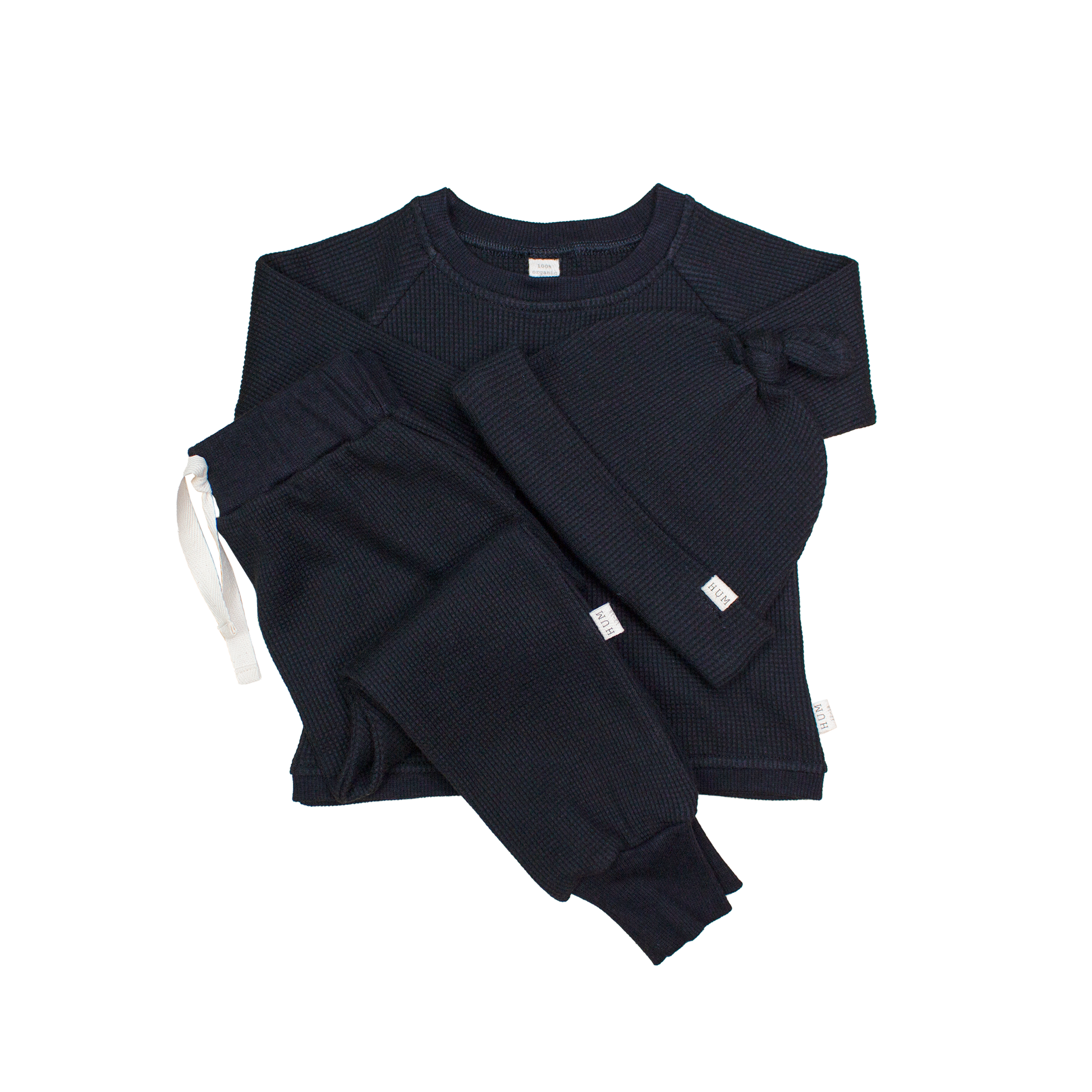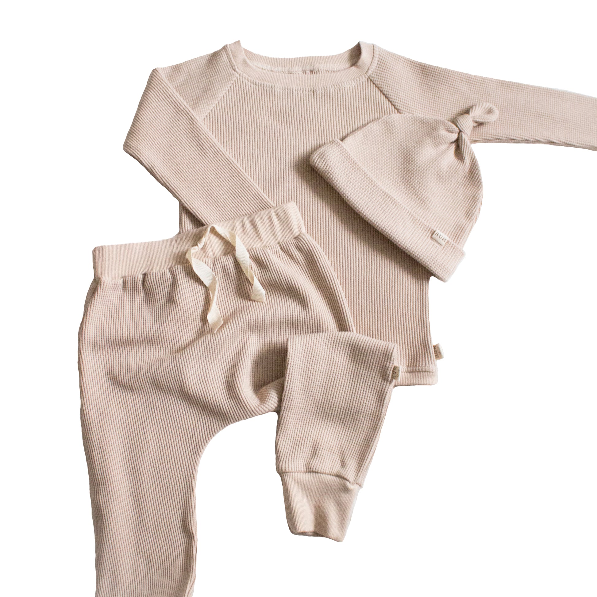 set includes waffle raglan, waffle joggers and baby waffle hat (only for sizes up to 2T)